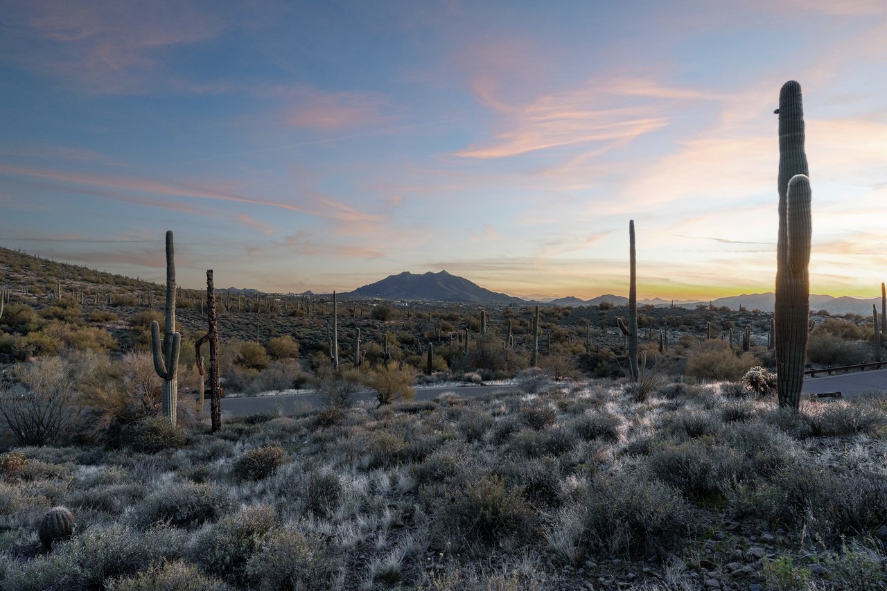 The Arrowhead property perched near the gateway to Continental Mountain Estates, a prestigious BedBrock luxury community where contemporary elegance blends seamlessly with the spirit of the ''Old West''. Encompassing 5.78 acres, this gently sloping hillside lot follows the natural contours of the mountain, embraced by iconic saguaro cacti and rugged desert landscape. Enjoy sweeping panoramic views of Black Mountain, the sparkling lights of Cave Creek and Carefree, and the distant beauty of Camelback Mountain on the horizon. As one of just four custom homesites in this exclusive enclave, the Arrowhead property offers the rare opportunity to collaborate with award-winning BedBrock Developers to create a one-of-a-kind desert sanctuary as an open canvas for your dream home.