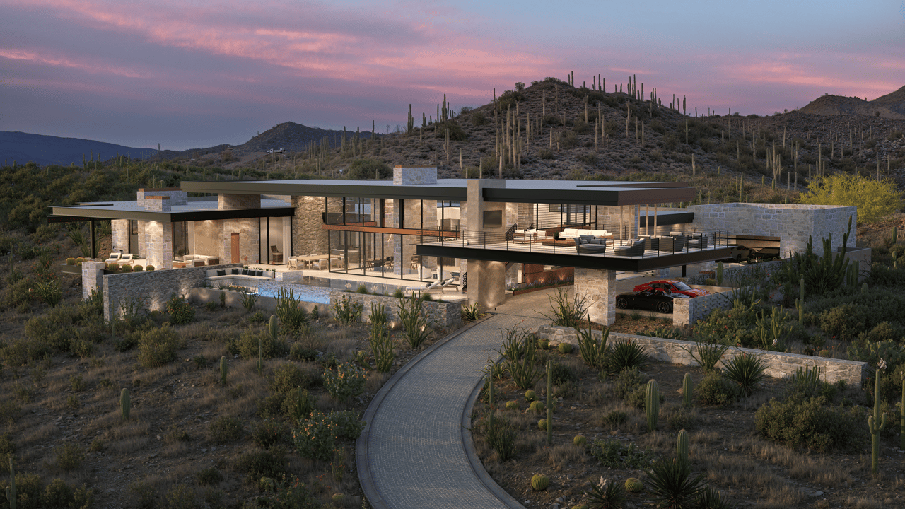 Lot 7 ‘Bolo’ resides at the heart of the Continental Mountain Estates community and serves as an anchor point for the hillside enclave. “We carefully selected the homesite to enable the architecture to rest gently on a plateau at the center of the parcel”, notes Principal Architect, Dean Ciofani. “This siting empowered the design to maximize available 360-degree views, all while minimizing the earthwork required for ease of construction.”